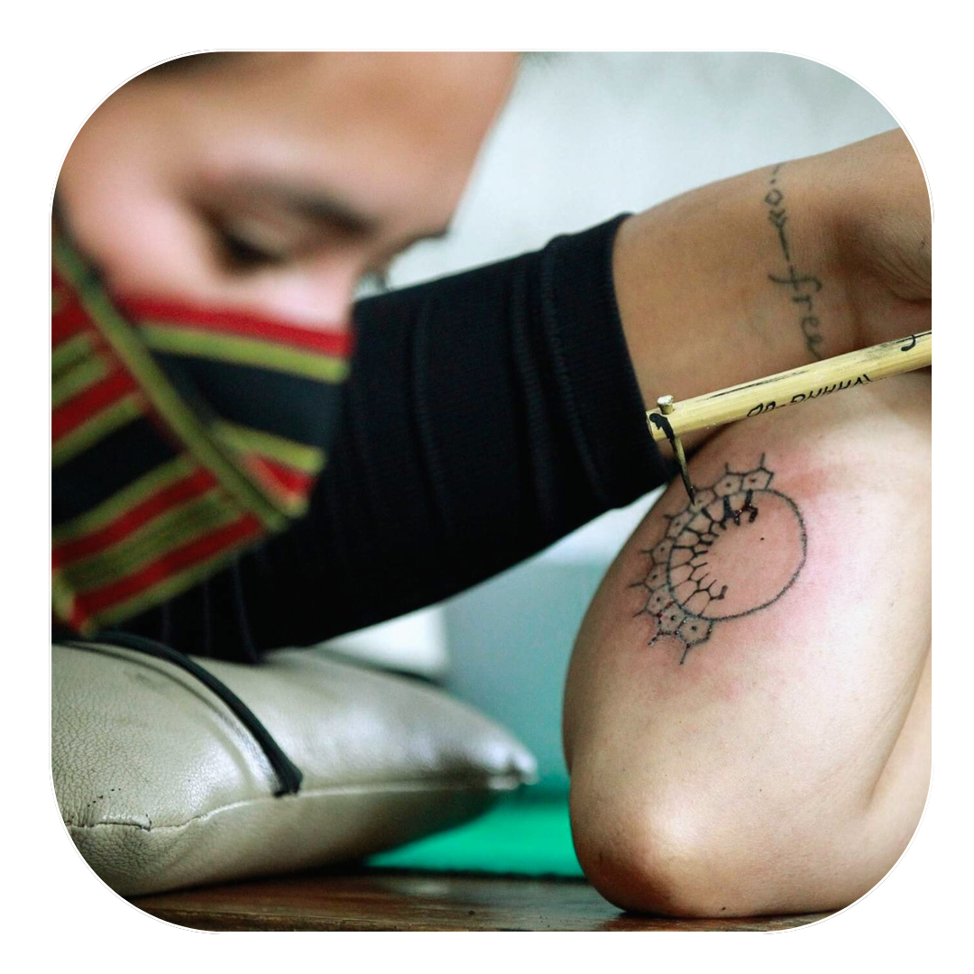 What are Traditional Tattoos? “Batok”, “Batek”, “Patik, “Batik”, or “Buri”, are a few of the names Filipinos would call this method of tattooing. “Tek” is the sound created when hitting the stick to create the tattoo. To make an instrument for tattooing, a lemon thorn is attached to the end of a light wooden stick. As for the ink, it is often made from soot scraped from a clay pot and mixed with water or plant dye until the desired consistency and color is achieved.