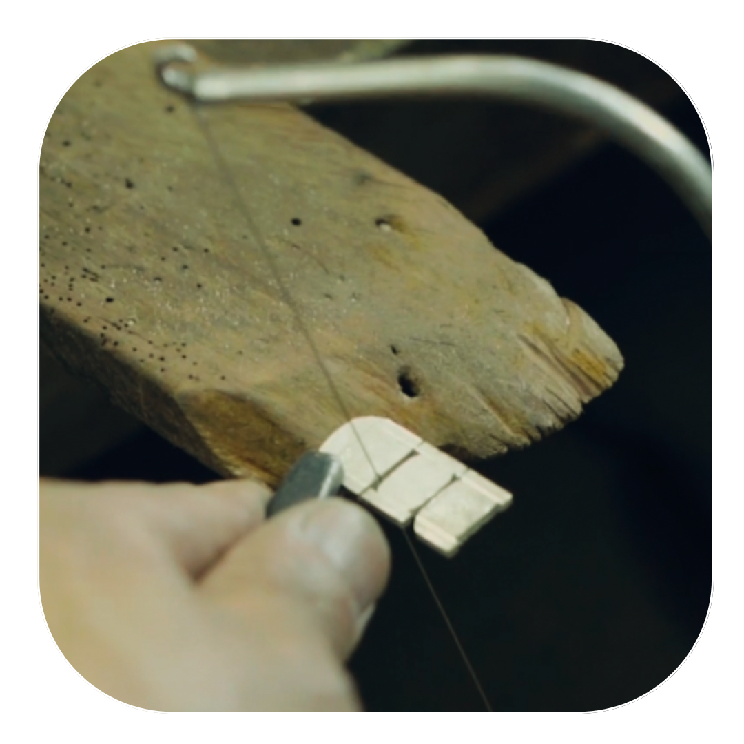 Each step in making the intricate filigree is done by one person. The silver used for the filigree is 95% pure.
